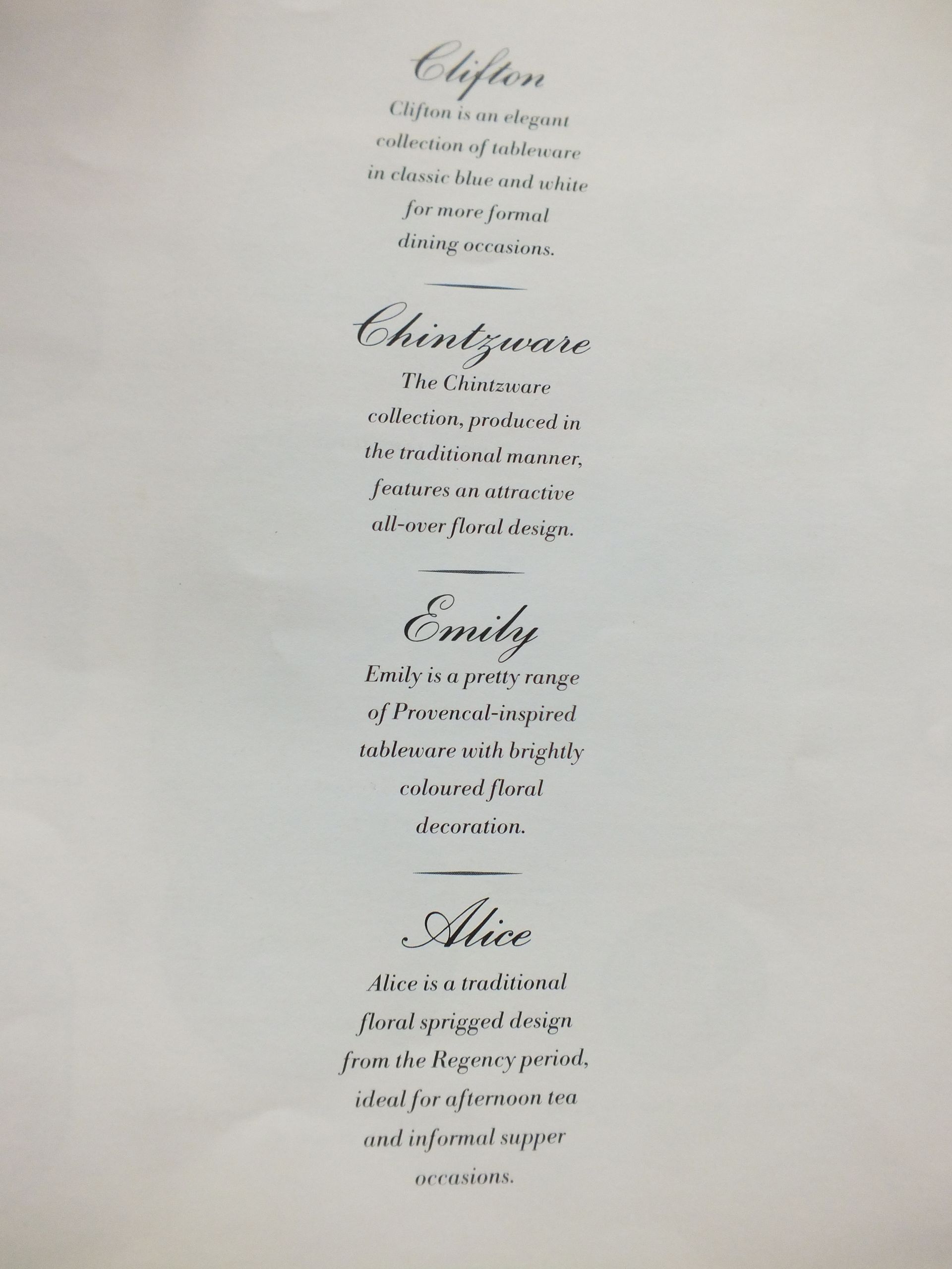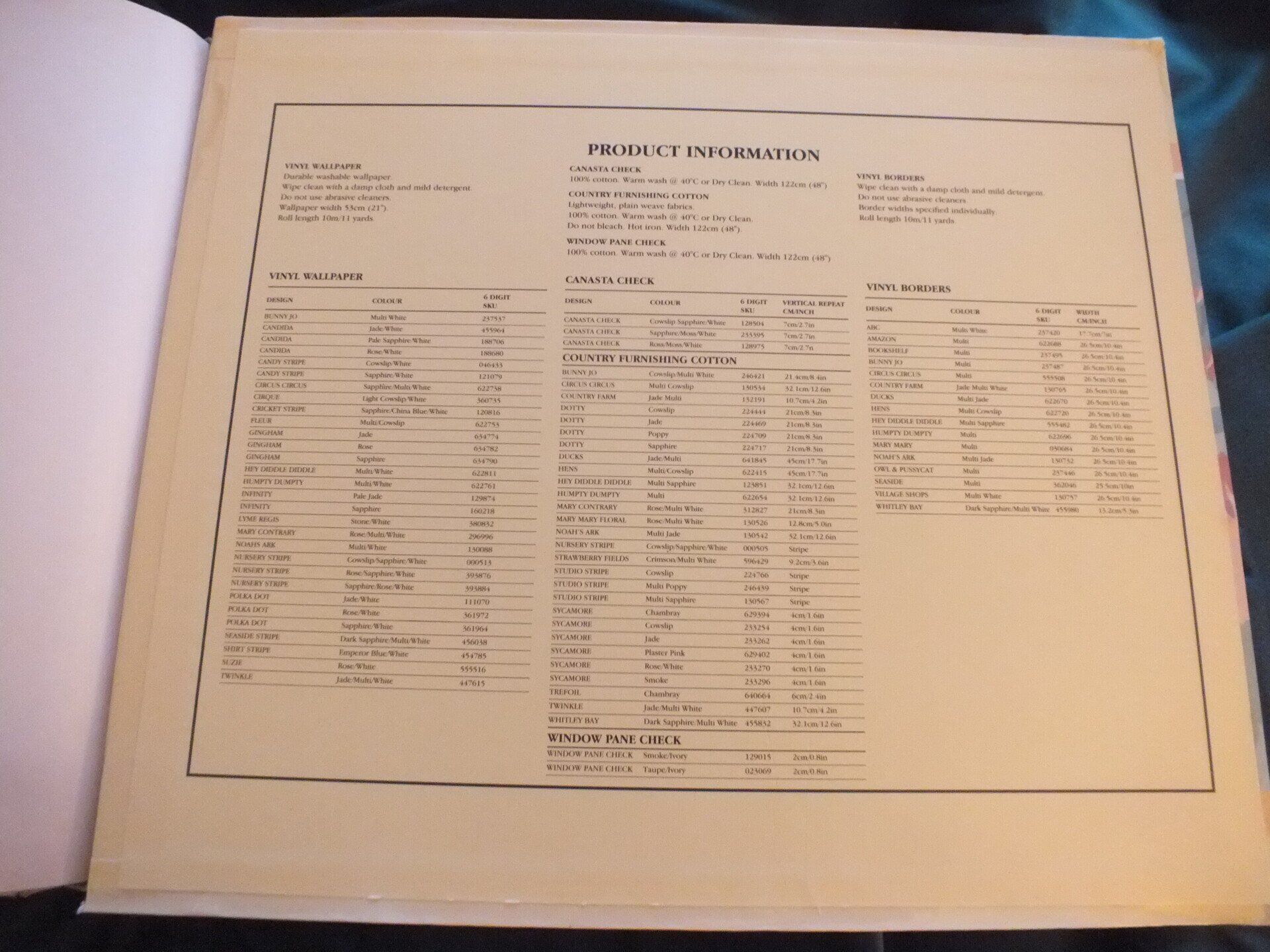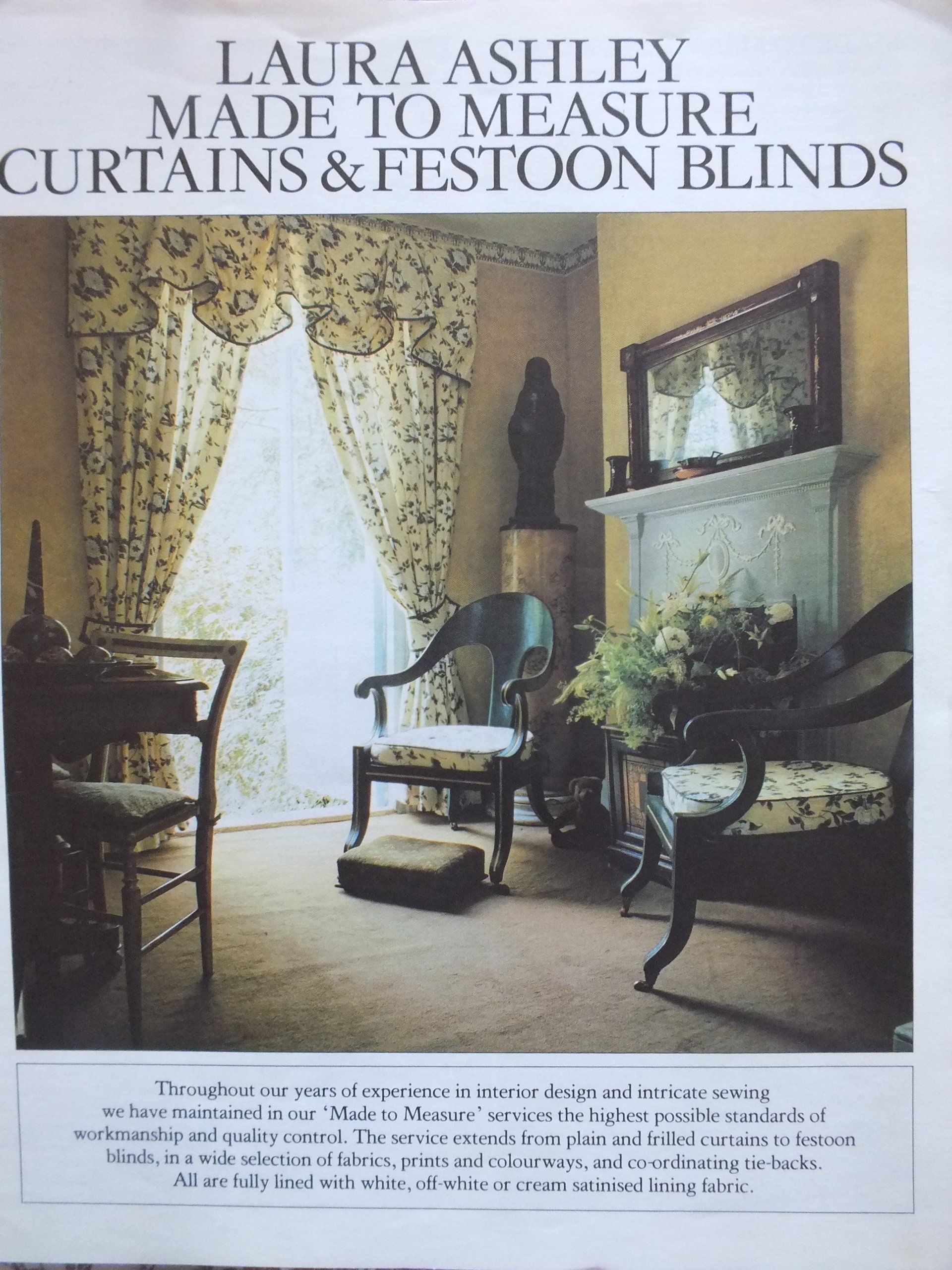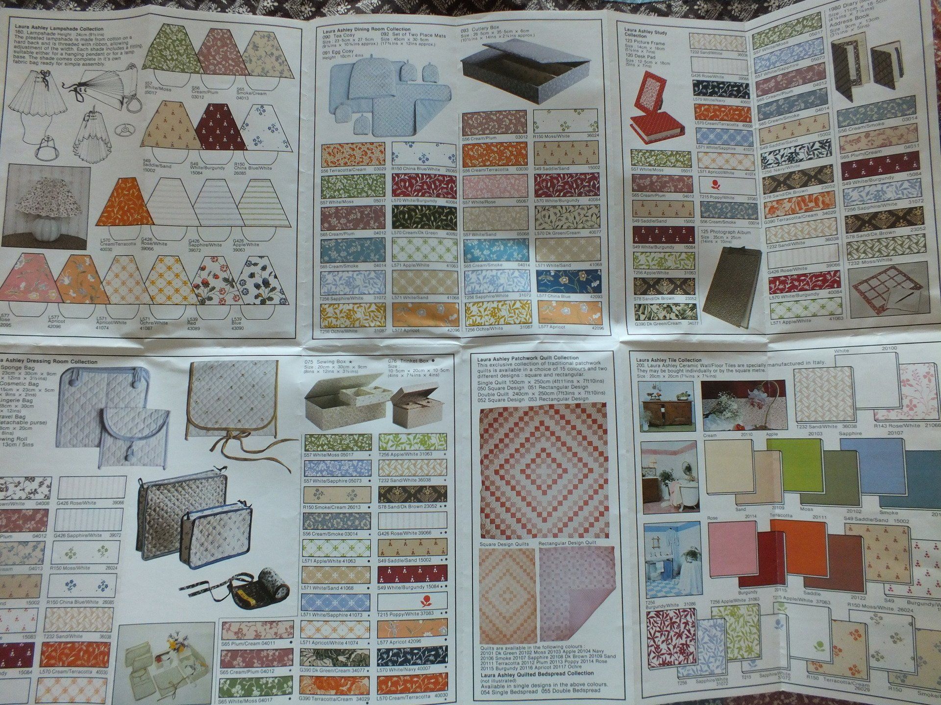 The first catalogue was simply a double sided leaflet as shown in this photo. Laura was initially reluctant to publish a catalogue as she worried restricting the range to specific designs would stifle her creativity. In 1981 they produced the first full catalogue and they were updated annually with occasional seasonal leaflets. In 2001 they began producing the catalogues twice a year and this continued until the companies sad demise in 2020.